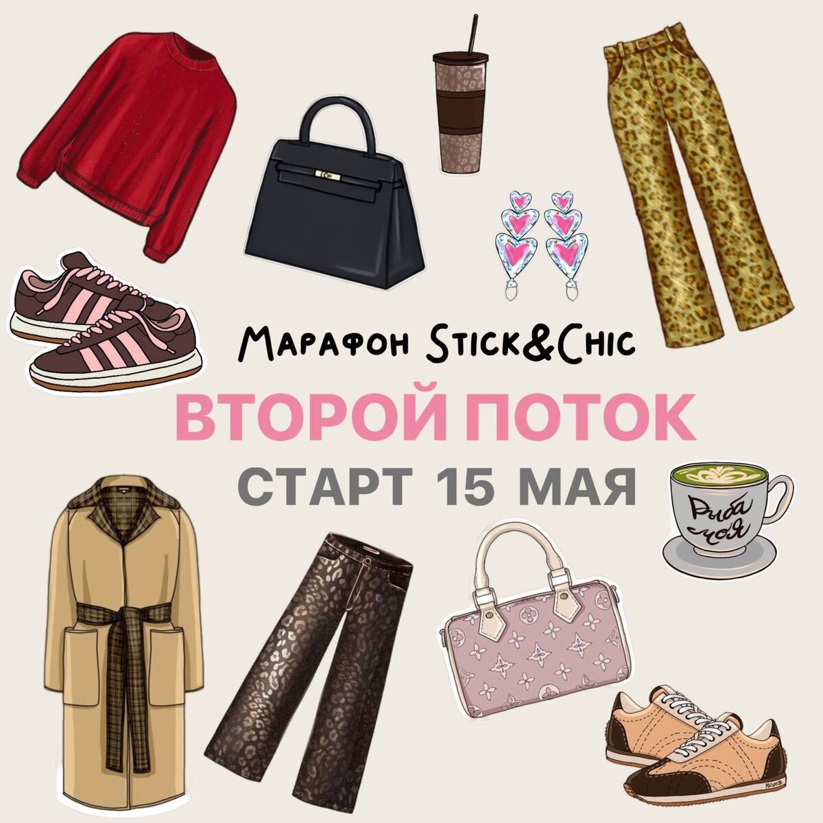 Просили повторить? После десятков сообщений «я не успела», «а будет ли ещё?» — стало понятно: не дать вам возможность участвовать в этом марафоне я просто не могу. Поэтому — да. Stick & Chic возвращается ✅ Всё так же стильно, с теми же уроками, той же атмосферой. 📎Стартуем 15 мая. Если пропустили в первый раз — ловите момент. В этот марафон невозможно не влюбиться 🤍 Кнопку на марафон закрепила выше ⬆️