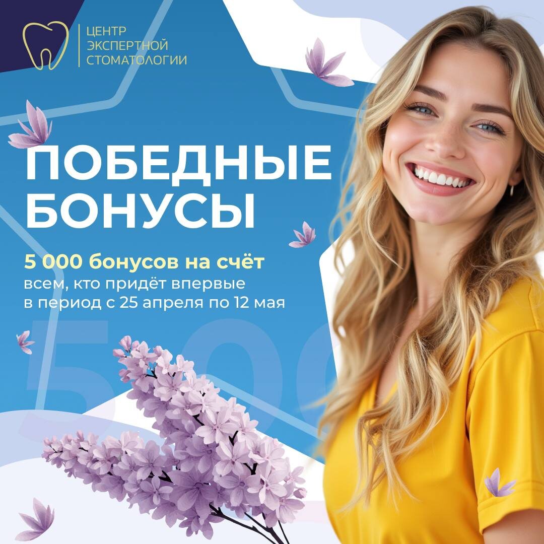 С 25 апреля по 12 мая в Центре Экспертной Стоматологии проходит праздничная акция — “Победные Бонусы”! 🎉 Всем новым пациентам, впервые обратившимся к нам в этот период, начисляем 5000 бонусов на личный счет. Использовать их можно при последующих визитах на любые услуги — это отличный повод начать заботиться о здоровье зубов с выгодой! 📅 Успейте записаться по телефону: +7 (495) 797-27-16 Адрес: Зельев переулок дом 3 Больше выгоды в Центре Экспертной Стоматологии!
