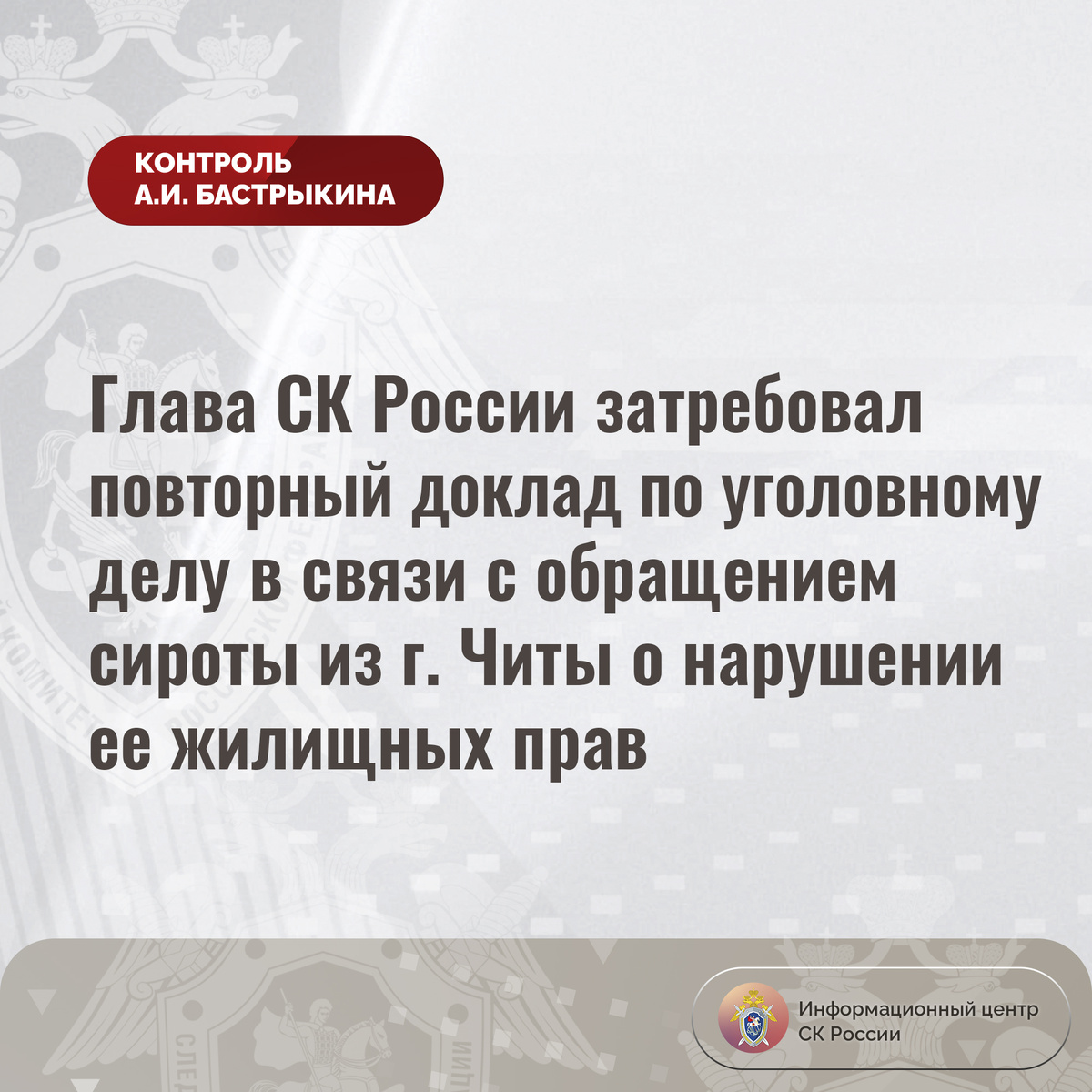 #СледственныйКомитет #СКРоссии #СКР #ИЦСКР #ИнформационныйЦентр #АлександрБастрыкин #ПредседательСКР #КонтрольПредседателяСКР #КомментарийКонтроль #ЗабайкальскийКрай