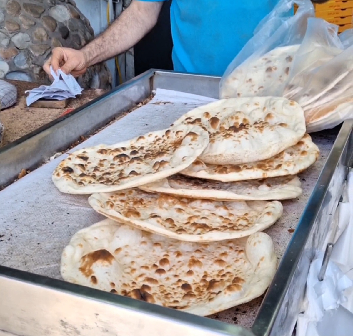 - Возьми 3. Муж не послушал и купил 6. Аромат свежеиспеченного хлеба тут же заполнил машину. - Сейчас заварим чаек и навернем эти лаваши с лябана, оливковым маслом и заатаром. Мммм, - размечтался ненаглядный и вдавил педаль газа. А теперь, внимание, вопрос: сколько лепешек мы довезли до дому? Подсказываю - одну, и ту покусанную. Особенность здесь не столько в рецепте, главное - способ приготовления. Вместо печки - кувшинообразная жаровня. На ближнем востоке их используют уже тысячи лет. В Иордании называется танур, в других местах - тандур, тонир и ещё кучу вариантов с разными гласными. Огонь разжигается на дне, а температура равномерно распределяется по всему объёму. И с восточной гостеприимностью окутывает всё, что попадает в зону её влияния - тесто, мясо, рыбу, овощи. А потом пылко томит. Тут главное - не зазеваться и вовремя выскочить. Ой, я ж про хлеб - вытащить. В Иордании за килограмм обычных лепёшек государство назначило фиксированные пол динара - $0,71. За тонкий лаваш из