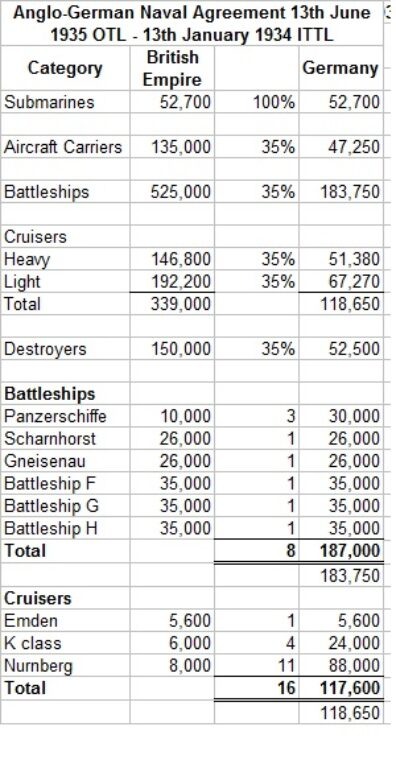 Это фактически позволило немецкой программе строительства крупных кораблей на 15 месяцев опередить OTL, поскольку привело к заключению англо-германского морского соглашения на 15 месяцев раньше.