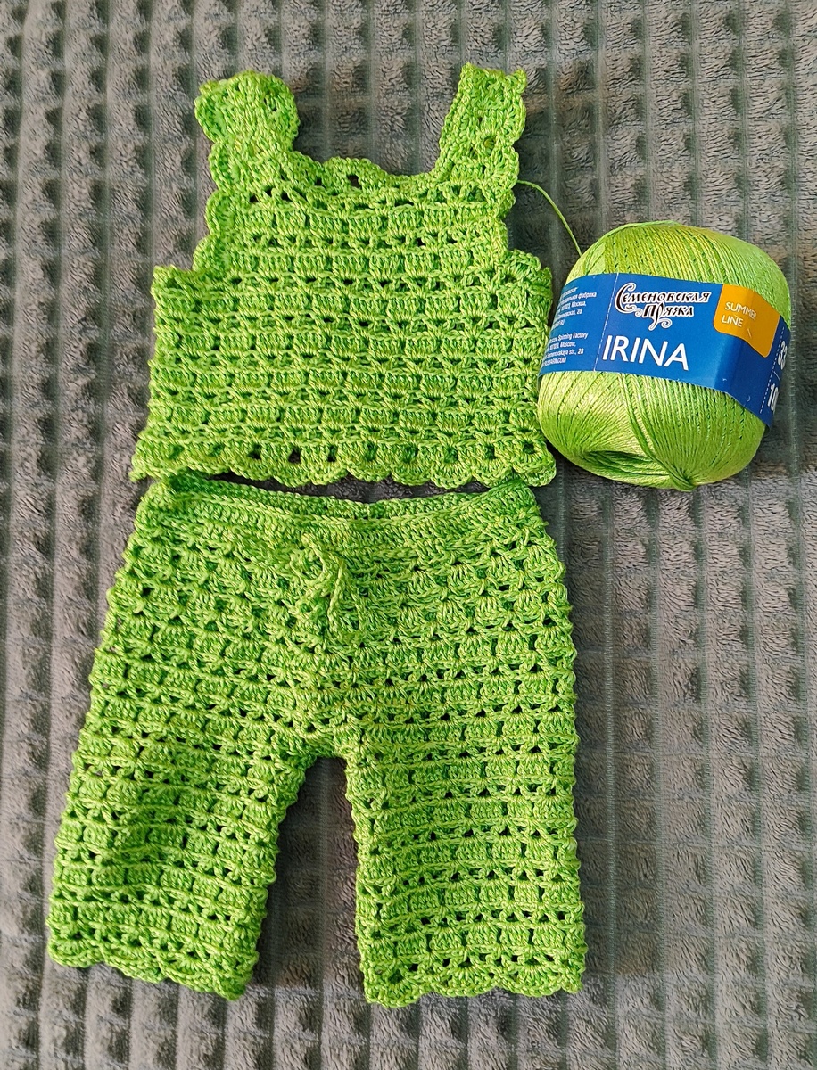Моя кукла реборн, рост 55 см., зовут её Лиза. Она как новорождённый ребенка 👶. Смело можно вязать эти бриджи и топ для ребенка. Для вязания использовала пряжу IRINA, это Семëновская пряжа, в 100г.-334м., состав: 66% хлопок, 34% вискоза. Крючок 2,7. За основу взяла схему шорт. Немного по длиннее связала и получились бриджи. Топ связан снизу вверх по этой же схеме. Какая модная Лиза, к лету готова 😊 Ещё больше схем и моделей можно посмотреть сдесь : Это тоже мой канал, только я редко там публикую. Это канал детское вязание, вязание для куклы и немного шитья.