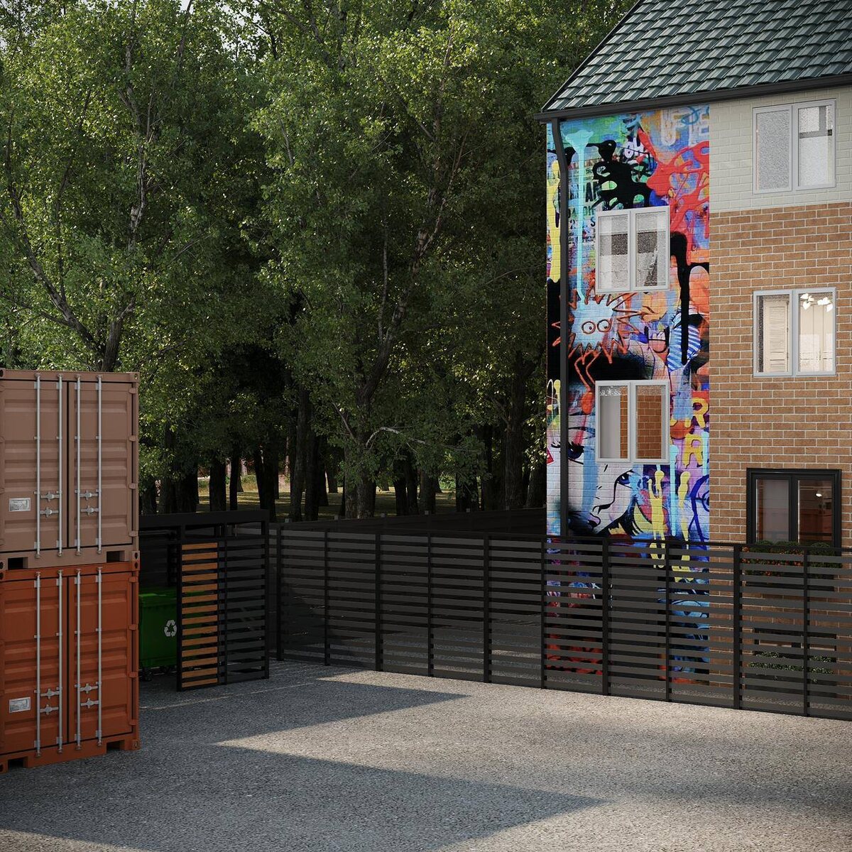 Это было лишь <недорогой в реализации> попыткой соединить всевозможные части проекта>такие как парковка, склады и совершенно дичайшую архитектуру из 90х