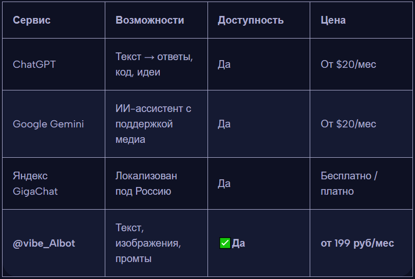 DeepSeek – это мощная серия моделей искусственного интеллекта, разработанная китайской компанией DeepSeek. Она способна генерировать текст, писать код, анализировать данные и даже вести диалоги на сложные темы. Это делает её конкурентом таких нейросетей, как ChatGPT, Gemini и Яндекс GigaChat. Но как быть пользователям из России, если официальный доступ ограничен? В этой статье ты узнаешь: Хотя DeepSeek не является западным сервисом и не блокируется напрямую, некоторые пользователи из России сталкиваются с проблемами: Что делать? Последний вариант — самый простой и быстрый. Никаких установок, регистрации или сложных настроек. Чтобы начать использовать DeepSeek: Если сайт не открывается — используй Telegram-бота @vibe_AIbot, который предлагает похожий функционал без блокировок . 💡 Через @vibe_AIbot ты можешь использовать нейросеть прямо в Telegram — никаких установок, только мгновенный доступ. DeepSeek технически обучен на данных множества языков, включая русский. Однако официальной лок