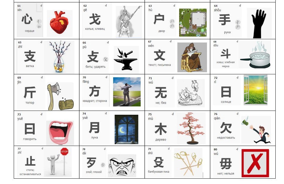 🎉 Карточки для изучения китайских радикалов (ключей) Часть 4