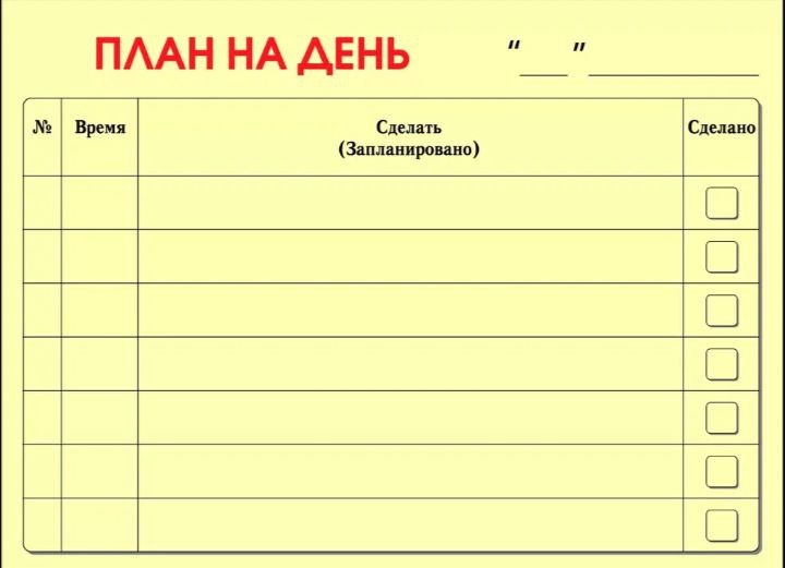 Если вы просыпаетесь без четкого представления о ваших планах на день, то с гораздо большей вероятностью вы заполните эту пустоту отвлекающими и бесполезными делами. Однако, если вы начинаете день глядя на план, то вам будет гораздо проще сохранять концентрацию.