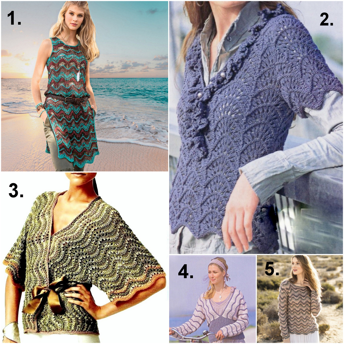 Вяжем красивые модели с несложными ажурными узорами «волны». Такой волнистый узор одинаково хорошо смотрится и на одноцветном изделии, и на полосатой вещи, и на градиентной секционной пряже. Принесла для вас 5 классных вариантов с подробным описанием: