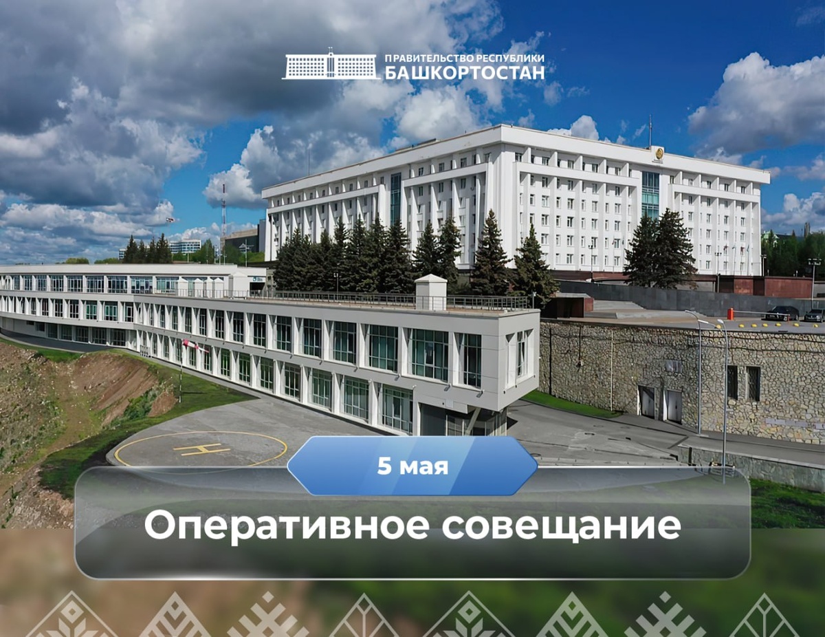 Оперативное совещание в Правительстве Республики Башкортостан: прямая трансляция 5 мая В понедельник, 5 мая 2025 года, в 12:00 Глава Башкортостана Радий Хабиров проведет очередное оперативное совещание с руководителями министерств и ведомств. ➡ В режиме видеоконференцсвязи с главами администраций районов и городов проанализируют ситуацию в здравоохранении, жилищно-коммунальном хозяйстве, дорожно-транспортном комплексе. Кроме того, обсудят чрезвычайные происшествия, обращения жителей в социальных сетях и ход проведения весенних полевых работ. ✔ Основные вопросы повестки дня: — благоустройство мемориалов и памятников, посвященных героям и событиям Великой Отечественной войны, — деятельность женских волонтерских отрядов и реализация проекта «Первая юрта», — модернизация материально-технической базы профессиональных образовательных организаций республики в 2025-2027 годах, — создание ИТ-инфраструктуры в образовательных организациях.
