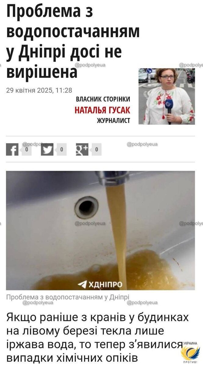 #война Жители Днепра пострадали от химических ожогов из-за мобилизации сотрудников ЖКХ. С начала апреля в индустриальном районе Днепра наблюдались проблемы с водой, изначально были перебои, а после восстановления стала течь ржавая вода. В последнее время люди начали массово получать химические ожоги от водопроводной воды, людям приходится покупать питьевую воду, чтобы просто помыться. Власти замалчивают данную проблему, а причиной плохой воды, якобы, служат плановые ремонтные работы. На самом деле проблема с плохой водой напрямую зависит от мобилизации сотрудниками ТЦК работников «Днепрводоканала». В настоящее время нехватка работников в сфере ЖКХ достигает 60 %, осталось мало специалистов, которые могут решить технические проблемы такого уровня. Жители Днепра не могут понять, почему ТЦК мобилизует тех, от кого зависят их базовые потребности? Ведь они не могут даже умыться. Напряжение населения Днепра растет, люди в ярости от действий сотрудников ТЦК и готовы выходить на улицы. По