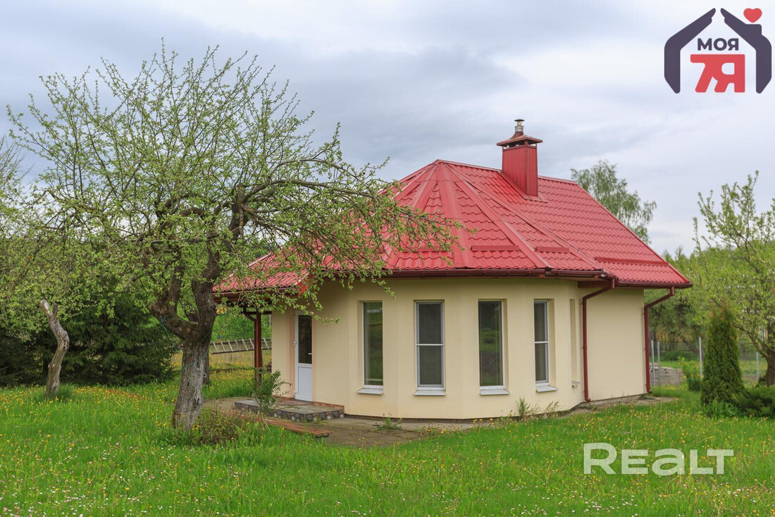 Сегодня мы покажем вам не самый обычный вариант для загородного отдыха. На нашей площадке продается участок в деревне сразу с тремя домами. Тут есть и современный домик с баней, и обычная деревенская хата, а также гараж с жилой комнатой. В общем, подойдет тем, кто любит отдыхать за городом большой компанией – ведь на такой «даче» всегда найдется местечко для гостей. Кстати, стоит «поместье», стоящее на 15 сотках, дешевле однушки в Минске. Смотрим. Самым современным строением на участке является небольшой двухуровневый домик с баней. Этот коттедж возведен из пеноблоков, утеплен и покрыт кровлей из металлочерепицы. Внутри домика уже сделан качественный ремонт с минималистичным дизайном. Обогревается постройка теплыми полами, но есть возможность перевести дом на электрическое отопление. На первом этаже коттеджа площадью 39 квадратных метров расположилась кухня-гостиная, укомплектованная всем необходимым, а также баня и полноценный санузел с ванной. На втором этаже площадью 28 квадратных м