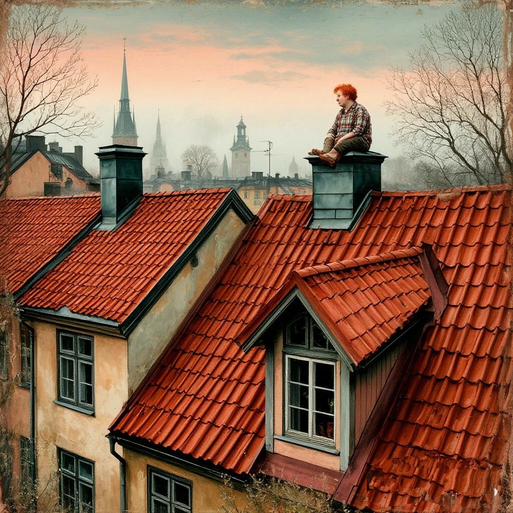 Крыша является метафорой пространства между реальностью и фантазией, свободное от взрослых правил. Карлсон высмеивает серьёзность и строгость взрослых, выступая защитником детского права на игру и спонтанность.