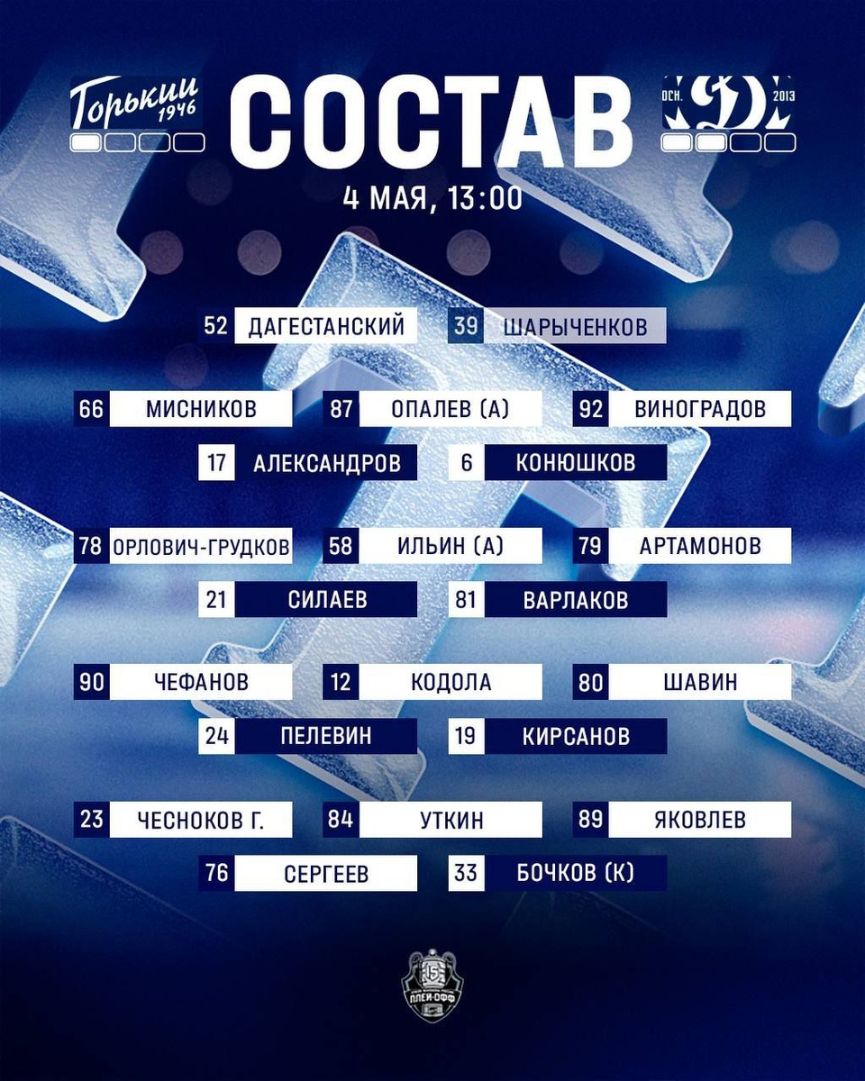 Скоро.. Очень скоро.. В 13.00 в КРК «Нагорный» начнется четвертый поединок полуфинала Кубка Чемпиона России между «Торпедо-Горький» - «Динамо СПб». Верим и надеемся, что нашей команде удастся сегодня победить и сравнять счет в серии. Знакомимся с составом команды на игру. Прямую трансляцию матча смотрите ЗДЕСЬ.