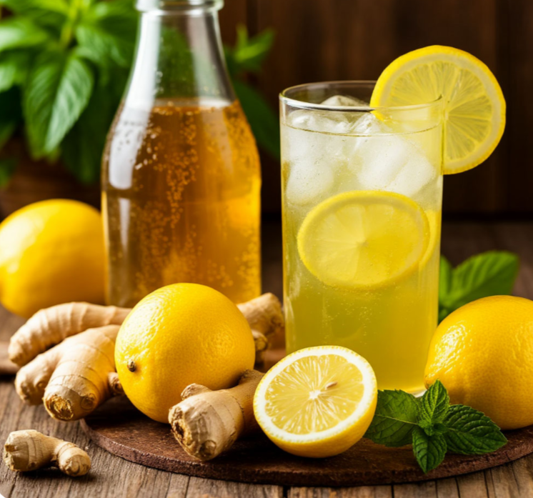 Сегодня мы приготовим два варианта освежающего имбирного эля: слабоалкогольный и безалкогольный, чтобы каждый мог выбрать напиток по своему вкусу! Для слабоалкогольного имбирного эля: очищаем корень имбиря (2-2.5 ст.л. в измельченном виде) и натираем его на мелкой терке или измельчаем в блендере. В кастрюле смешиваем 2 литра воды и 150-200 г сахара (количество регулируйте по своему вкусу). Доводим до кипения и варим сироп до растворения сахара. Снимаем сироп с огня и добавляем натертый имбирь. Даем сиропу остыть до комнатной температуры. Добавляем сок 1 лимона и 0.5-1 ч.л. дрожжей. Переливаем напиток в чистую пластиковую бутылку, оставляя немного места для воздуха. Плотно закрываем бутылку крышкой и оставляем при комнатной температуре на 1-3 дня для брожения. Следите за давлением в бутылке, при необходимости выпускайте газ. После брожения убираем эль в холодильник на несколько часов, чтобы остановить брожение и охладить напиток. Для безалкогольного имбирного эля: очищаем 4-5 см корня имбиря и натираем на мелкой терке или измельчаем в блендере. В кастрюле смешиваем натертый имбирь, сок 1 лимона, 4-5 ст.л. сахара (по вкусу) и небольшое количество воды (около 500 мл). Доводим до кипения и варим на медленном огне около 10-15 минут. Даем сиропу остыть и процеживаем его через сито. Добавляем сироп в газированную воду (1.5-3 литра, по вкусу) и перемешиваем. Подаем имбирный эль охлажденным, украсив веточкой мяты или базилика.