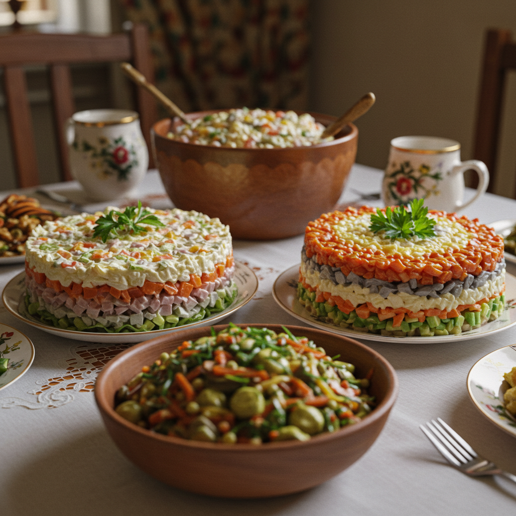 Для меня вкус этих салатов – это вкус детства, вкус праздников, которые мы отмечали всей семьей. Аромат "Оливье", нежная "Сельдь под шубой", яркий "Винегрет" – это не просто еда, это воспоминания о тепле домашнего очага и радости совместного застолья. Приготовление этих салатов сегодня – это способ прикоснуться к истории своей семьи и страны.