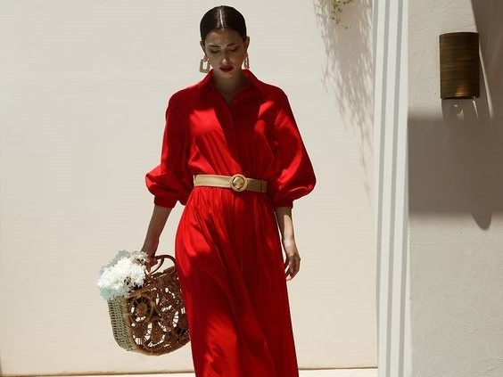 Красный цвет традиционно символизирует страсть, элегантность и роскошь. В этой статье эксперты стиля предлагают рассмотреть актуальные образы в красном цвете. Для создания эффектного образа на торжественное событие стилисты предлагают красный костюм с мини-юбкой. Золотые пуговицы добавляют наряду изысканности и шарма, а кожаный клатч в тон и массивные серьги золотистого цвета станут идеальным завершением ансамбля, сделав его по-настоящему праздничным. Чёрная блуза, красные брюки классического кроя с высокой талией и чёрные туфли-лодочки на шпильке — лаконичный и стильный наряд для тех, кто ценит элегантную классику. Для создания следующего аутфита стилистам понадобилась шляпа красного цвета, красная блуза, яркий брючный костюм актуального цвета, а также массивная бижутерия золотого оттенка. Красную миди юбку в этом сезоне стилисты советуют комбинировать с белыми минималистичными футболками, а так классическими рубашками. В качестве обуви к этим нарядам отлично подходят остроносые туфл