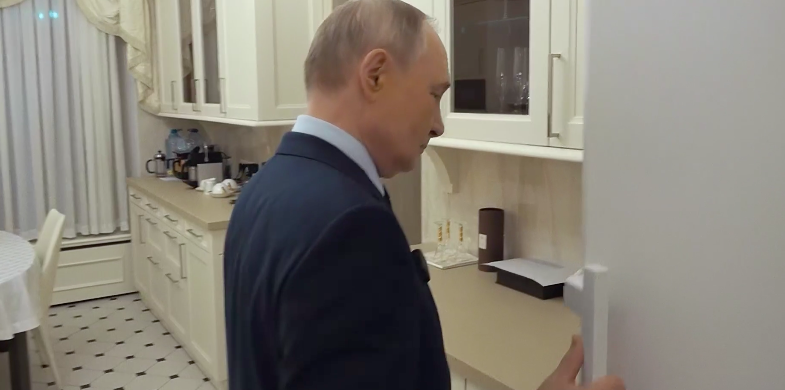 В рамках премьерного показа документальной ленты «Россия. Кремль. Путин. 25 лет» 4 мая, президент Владимир Путин продемонстрировал содержимое своего кремлевского холодильника. В частности, внимание привлек кефир рязанского производства, который глава государства извлек из холодильной камеры. Стоимость данного продукта в розничных сетях составляет от ста до ста тридцати трех рублей. «Не хотите ли кефира? Есть еще ряженка... Хотя, стараюсь в это время уже не употреблять пищу», – сказал Путин журналисту Павлу Зарубину. Президент также упомянул, что иногда позволяет себе вечерний кефир. Помимо этого, Владимир Путин предложил журналистам сладости, полученные в подарок от белорусского лидера Александра Лукашенко. На кухне резиденции президента также были замечены растворимый кофе, соевый соус, бумажные полотенца, мельницы для приправ и соковыжималка.