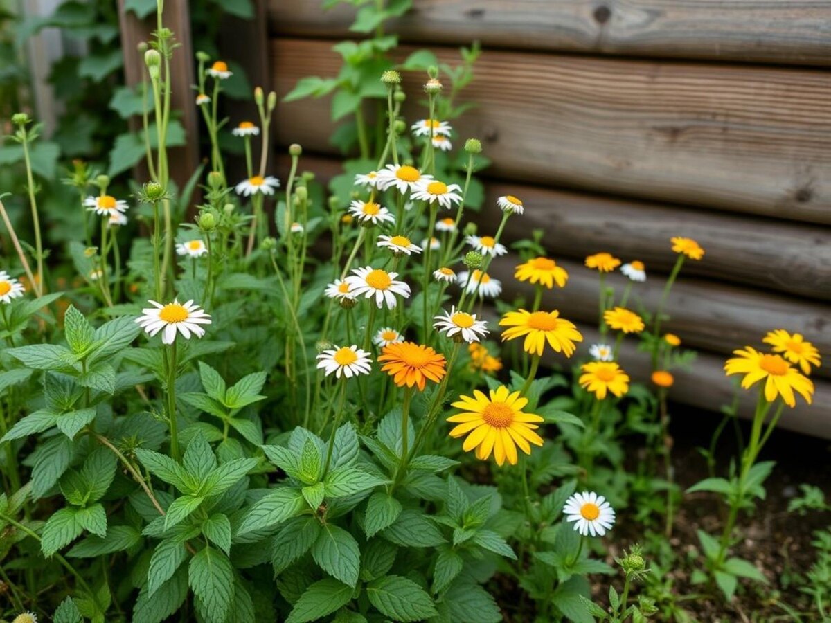 - Ромашка аптечная — не боится сорняков, цветёт всё лето