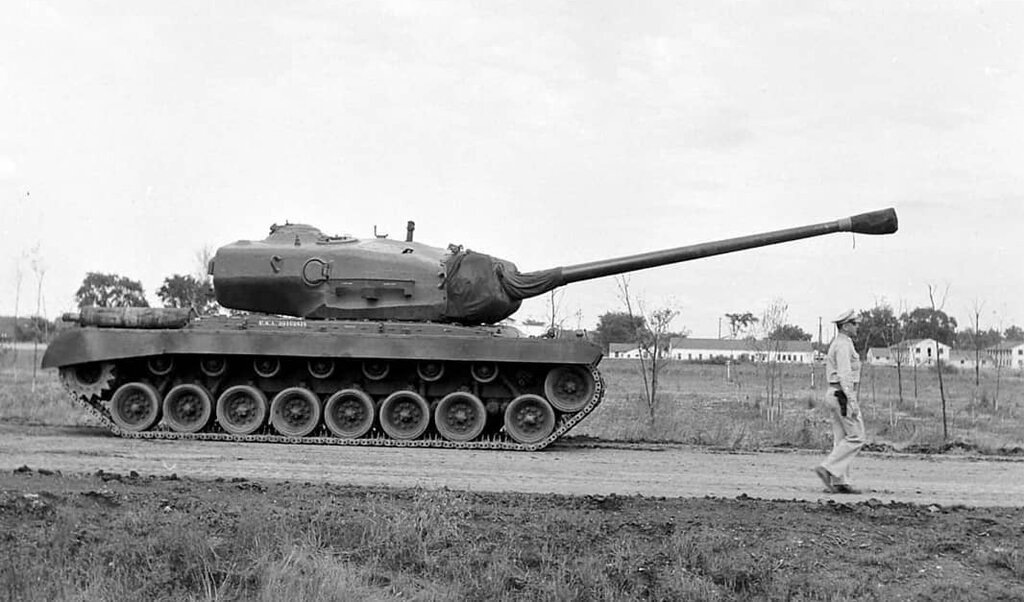 Основное вооружение было сосредоточено вокруг высокоскоростного 105-мм главного орудия T5E2, предназначенного для пробивания толстой брони. Функциями основного орудия управлял орудийный рядовой, в то время как заряжанием и выгрузкой 105-мм снарядов занимались два специальных погрузчика - один располагался слева от казенной части, а другой справа. Точечная защита от пехоты обеспечивалась 7,62-мм универсальным пулеметом Browning M1919A4, установленным в носовой части танка, в передней правой части корпуса. Шаровая установка допускала ограниченный ход и высоту, но была удовлетворительной для своей роли. Этот член экипажа также управлял радиотехническим комплексом на своем посту. 2 крупнокалиберных пулемета Browning M2HB калибра 12,7 мм были установлены в качестве спаренных установок в башне рядом с основным орудием. Третий крупнокалиберный пулемет калибра 12,7 мм был установлен на цапфе вдоль крыши башни для противодействия угрозам с воздуха. На борту танка перевозилось до 63 снарядов калибра 105 мм, а также 2420 патронов к крупнокалиберному пулемету калибра 12,7 мм и 2500 патронов к пулемету калибра 7,62 мм. Командир танка управлял действиями наводчика, в то время как заряжающие отвечали на вызовы цели, подавая соответствующие боеприпасы (будь то ОН САМ или AP). Спаренный пулемет также мог использоваться для определения дальности стрельбы основного орудия или поражения вражеской пехоты и легкобронированной техники, когда 105-мм основное орудие считалось "излишним".