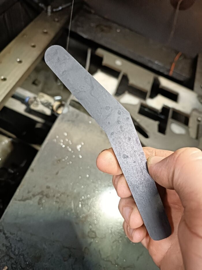 Буэнос диас, геноссен. У нас тут как обычно - импортозамес во все поля. Печалит людей, что детали на аэроплан теперь не достать - вот и обращаются в мою скромную обитель металлоёбия шоб повторить. На этот раз у нас изделие "качалка". Очевидно, оно какие-то тросики тянет. Ну, поехали, например. Перво-наперво режу заготовки из 40Х на электроэрозионном проволочно-вырезном станке. Теперь желательно навалить на них отверстионных дырок. Причём не в рандомном месте, а где надо. Подготовил контуры в "люстре", и на лазере маркирнул: Судя по вкладыванию свёрлышек, соосность удалась. Хотя я не уверен, что она там вообще нужна. Но пусть лучше будет, чем нет. Теперь обнижение. Можно было бы на фрезере, разумеется. Но толщина после обработки - 5мм. И обработка почти по всей плоскости, кроме каблучка. короче, нунах. Проще на шлифере. Это мелкий шлифер. Черновая обдирка вот такая. А потом заправляю камень и делаю красиво. А, на большом шлифере ещё же сперва изнанку причесал. Теперь - насечка. Изначаль