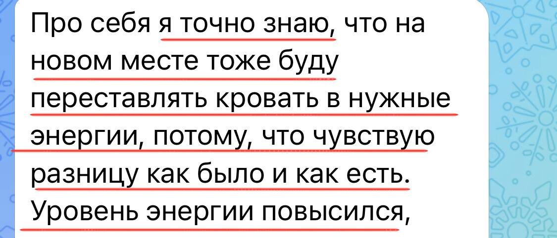 🕳Уровень энергии повысился 🕳Новые возможности начали появляться 🕳Закрутился событийный ряд Вот таким и результатами со мной делятся те, кто был на марафоне по фен-шуй, на котором мы просто искали лучшее место для кровати. Но и весь фокус в том, что лучшее место для сна-это основное, что мы хотим, применяя фен-шуй. Я много раз писала и говорила на эфирах, что место сна-это основное место получения энергии Ци. И Вы можете или получать супер энергию для вашего роста и процветания, или получать энергию «так себе» в лучшем случае. Сейчас запись марафона оформлена в формат мастер-класса, стоимость которого по сравнению с той ценностью, которую я даю, минимальна. Поэтому, я решила сохранить эту стоимость ещё на три дня и далее увеличу её вдвое. У вас есть возможность ещё получить доступ к мастер-классу по минимальной цене, которая ещё и включает мою личную обратную связь.❤️🔥 Получить доступ можно 🕳здесь🕳 #феншуй_результаты