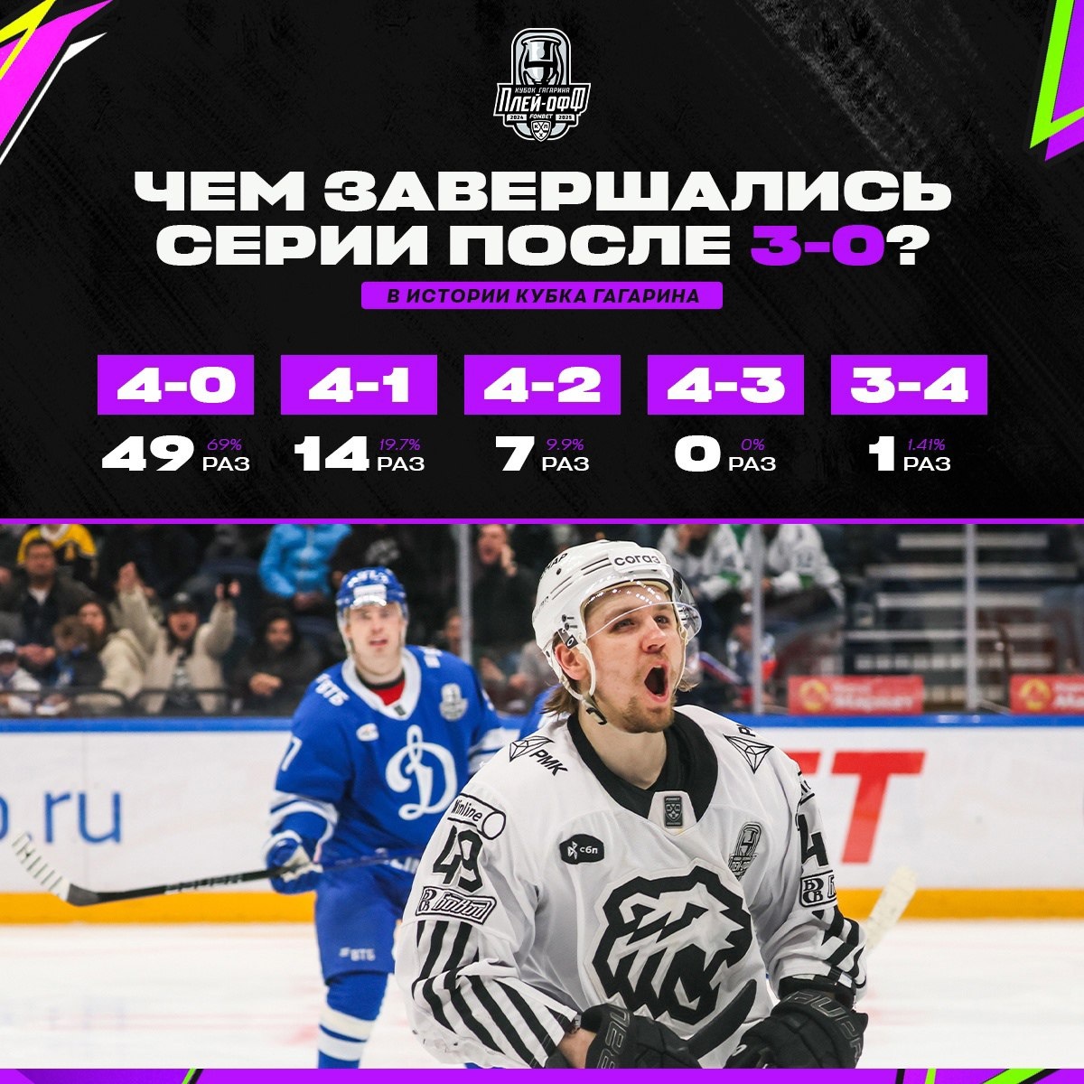 У «Трактора» есть 4 попытки, чтобы закрыть серию. Статистически у челябинцев есть хороший шанс на это — 98.6%. Но не 100%.