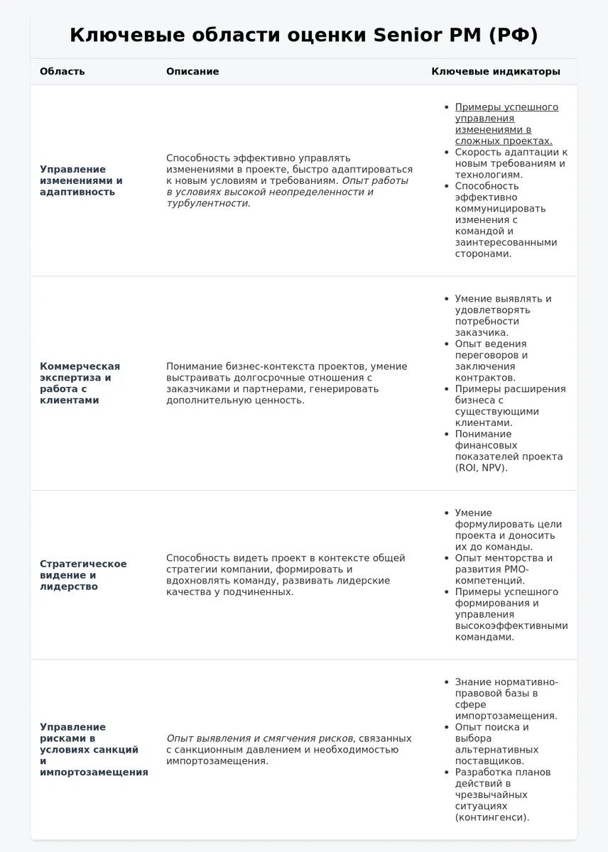 Работодатели, нанимающие старших менеджеров проектов, уделяют особое внимание следующим ключевым областям: