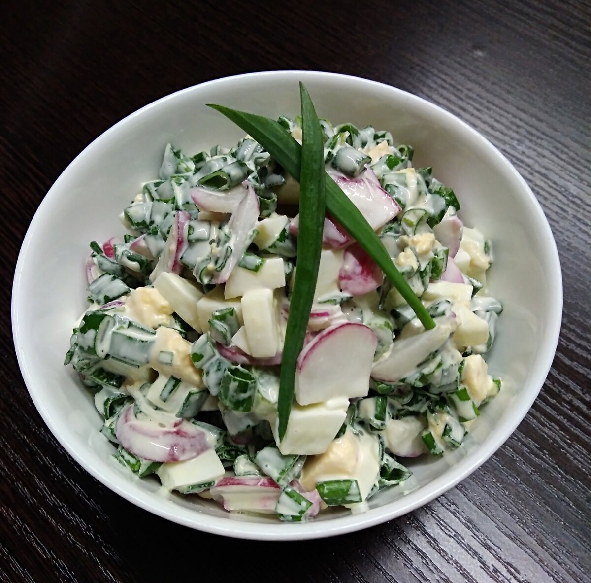 Салат весенний, но мне хочется дать ему другое название - "салат из детства"! Потому что данный салат, окунает меня в далёкое детства. Когда начиная с конца мая и до середины июня, мама постоянно его готовила. В конце мая на огороде вырастали огурцы, они были маленькие, но хрустящие и сладкие. Вместе с огурцами появлялась редиска, кстати, горькой никогда не была, потому что поливали каждый день ) Ну и вырастал зелёный лук. Сейчас конечно, такой салат можно в любое время года приготовить, нужные ингредиенты продают в любом магазине даже зимой. В детстве всё было своё, даже яйца домашние, их брали у бабушки. Только сметану приходилось покупать в магазине. Ингредиенты: - огурцы 3 шт - редиска 8 шт - яйца 3 шт - зелёный лук пучок - сметана или майонез 2-3 ст.л - соль по вкусу Приготовление: Яйца отварить, остудить, почистить от скорлупы и нарезать кубиками. Огурцы и редиску помыть, и тоже порезать кубиками. Зелёный лук хорошо промыть и мелко нарезать. Все ингредиенты складываем в