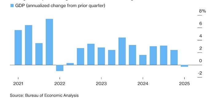 Экономика США ушла в минус впервые с 2022 года. Источник: Bloomberg