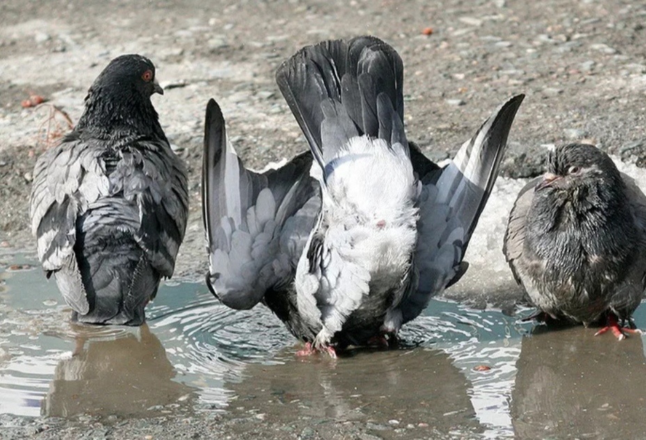 Голуби — привычные обитатели городов, и многие видели, как они шумно плещутся в лужах после дождя. Но зачем они это делают? Оказывается, такое поведение не просто забава, а важная часть их жизни. Гигиена и уход за перьями Главная причина, по которой голуби купаются в лужах, — поддержание чистоты. Вода помогает им избавиться от грязи, паразитов и отмерших частичек кожи. Перья, покрытые пылью и кожным жиром, теряют свои свойства, а купание восстанавливает их структуру. Чистые перья лучше сохраняют тепло и позволяют эффективнее летать. Борьба с паразитами В оперении птиц часто селятся клещи, пухоеды и другие паразиты. Вода смывает часть из них, а также помогает избавиться от зуда и раздражения. Некоторые голуби после купания дополнительно «чистятся» на солнце или в пыли, чтобы окончательно прогнать вредителей. Регуляция температуры В жаркую погоду купание в луже — простой способ охладиться. Вода испаряется с поверхности перьев, снижая температуру тела. Зимой же голуби купаются