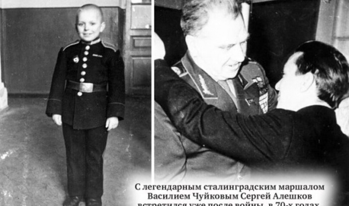 Самым юным участником Сталинградской битвы был Сергей Алешков, который в 5 лет остался круглым сиротой. Во время войны маму мальчика и его 10-летнего брата схватили фашисты. Они пытали их, а затем убили, и только маленькому Сереже удалось убежать и спастись. Спустя время его нашли в лесу советские разведчики и переправили к своим сквозь линию фронта. Ребенка оставили в части и даже подобрали ему маленькую, но настоящую военную форму. Мальчик как мог помогал солдатам, нося почту и патроны, читая им стихи и развлекая песнями в период затишья. А в сентябре 1942 года он был официально усыновлен майором Митрофаном Воробьевым. В Сталинград он попал уже вместе со своим приемным отцом и полком. Именно там он и отличился. Разнося праздничный номер «Красной звезды», он заметил двух подозрительных людей, которые прятались в стоге сена, и поспешил доложить командиру. Выяснилось, что незнакомцы – вражеские лазутчики. Диверсантов удалось обезвредить благодаря 6-летнему мальчишке. Когда Сергею едва и