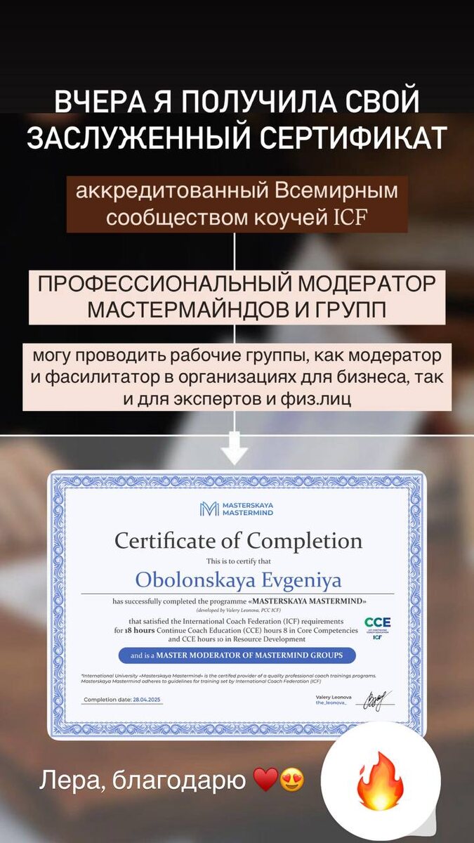 Я ПРОФЕССИОНАЛЬНЫЙ МОДЕРАТОР МАСТЕРМАЙНДОВ И ГРУПП. Я всегда ЗА РЕЗУЛЬТАТ и мне было важно научиться давать результат в групповом формате. Чтобы это были не просто посиделки, а встречи, которые будут завершаться реальными продвигающими действиями. ЦЕЛЕВЫМИ ДЕЙСТВИЯМИ! А группа будет безопасной и очень поддерживающей для каждого. Теперь я это умею делать профессионально 😍 и очень кайфую от этого ♥️ #дипломы #образование