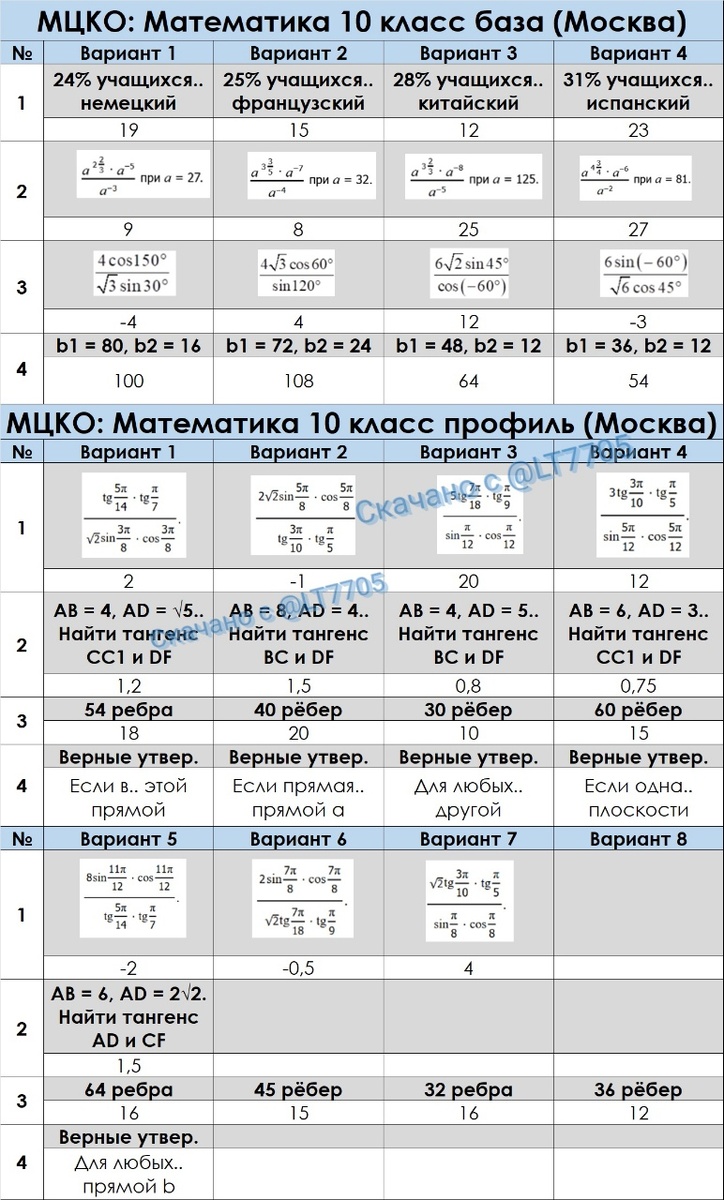 4. Варианты заданий могут перемешиваться, поэтому лучше всего сверяться по ответам