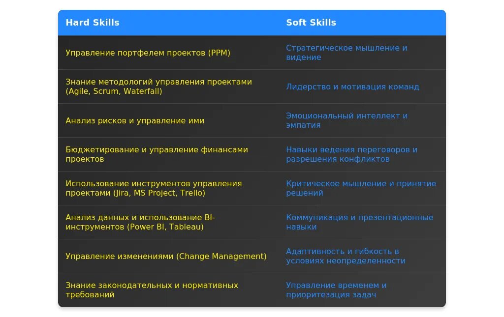 Ключевые фразы: "управление бюджетом", "внедрение методологий", "оптимизация процессов".
