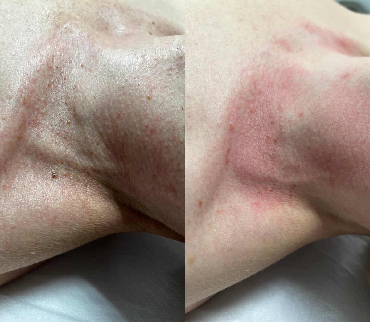 К нам обратилась пациентка с россыпью мелких, выпирающих кератом на шее.