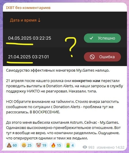 В отечественном игровом инфополе разворачивается очередная история, вызывающая смешанные чувства и оставляющая больше вопросов, чем ответов. На этот раз в центре внимания оказались известный ресурс iXBT Games и издатель MY.GAMES, а яблоком раздора, по утверждению первых, стала критика издательской деятельности последних, повлекшая за собой финансовые последствия через сервис Donation Alerts. Согласно заявлениям представителей iXBT Games, опубликованным в их Telegram-канале, конфликт начался после выхода новостного ролика 21 апреля 2025 года. В этом выпуске, среди прочего, содержалась критика подходов MY.GAMES к изданию таких проектов, как Tempest Rising и Mandragora. Как утверждают авторы канала, буквально в тот же день после публикации видео им были заморожены выплаты через Donation Alerts – сервис приема донатов, который исторически был связан с iXBT, но теперь принадлежит структурам MY.GAMES. По словам iXBT, их запросы в службу поддержки сервиса оставались без ответа на протяжении н