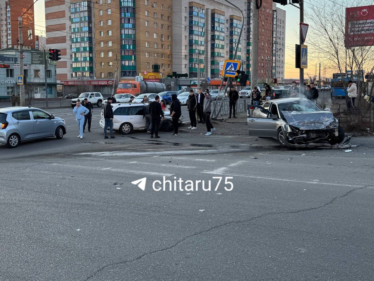 Жесткое ДТП около мкр Царский. Очевидец сообщил @chita.ru, что разбиты 2 машины. Одна из них врезалась в светофор. UPD: на месте видели сразу 2 машины реанимации. По предварительным данным, в аварию попали 3 машины. На место выехал наряд ДПС и вызвали скорую помощь. Фото от подписчика 🟦Подписаться | Предложить новость