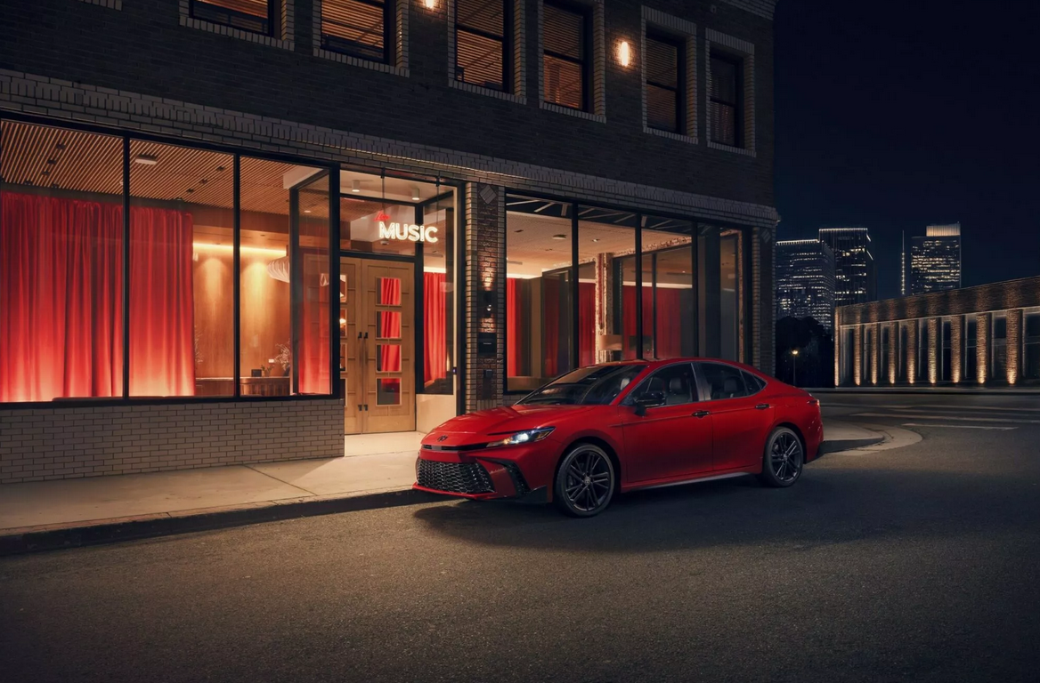 Японский автопроизводитель раскрыл детали о новом поколении своего флагманского седана. Camry 2026 года получила не только обновленный дизайн, но и новые технологические решения. Компания Toyota представила официальные изображения Camry 2026 года, сделав особый акцент на версии Nightshade Edition. Эта модификация выделяется агрессивным дизайном с многочисленными черными акцентами. Решетка радиатора, зеркала, дверные ручки и даже задний спойлер выполнены в темном цвете, что придает автомобилю спортивный характер. Покупатели могут выбрать один из трех цветов кузова: Ice Cap, Supersonic Red или Midnight Black Metallic. В последнем случае машина выглядит особенно стильно за счет полного отсутствия хромированных элементов. Дополняют образ 19-дюймовые черные колесные диски. Салон Nightshade Edition получил спортивные сиденья из материала SofTex с контрастной прострочкой. Производитель установил алюминиевые педали и рулевое колесо с лепестками переключения передач. Техническое оснащение включ
