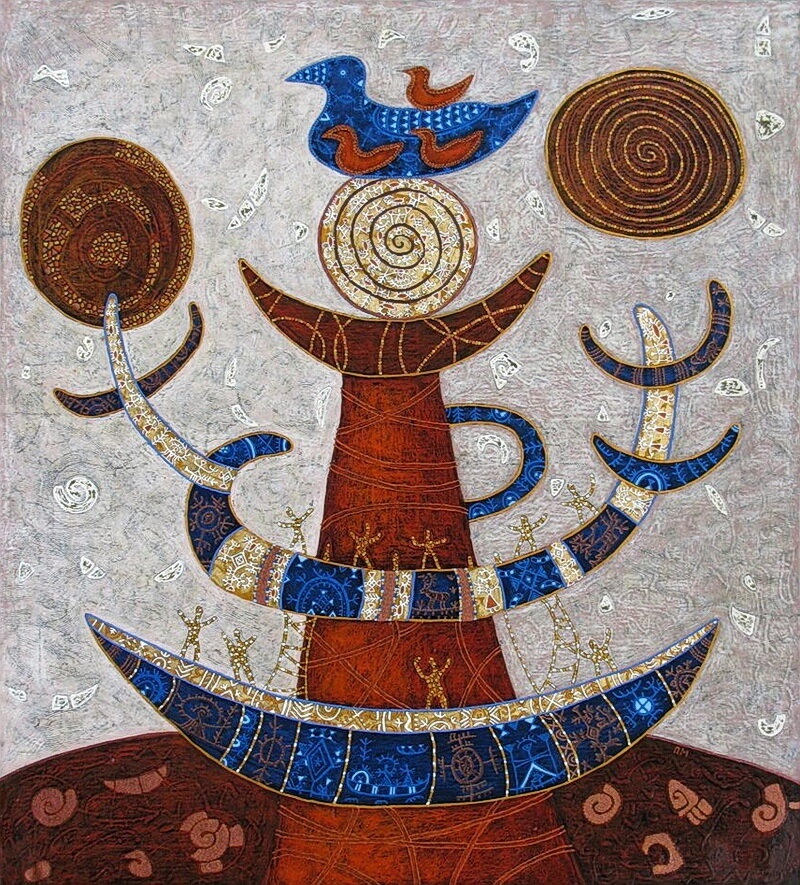 В глубинах древнейших славянских преданий существует образ удивительного, таинственного и почти забытого существа — Мировой Уточки, Птицы Первородия. Её крылья расправились над миром ещё до того, как он был создан, а её перо коснулось Вечности задолго до появления богов и людей. Из пены Великого Океана она поднялась, тихо скользя по водам, что еще не знали берегов. Она не имела имени, но всё, что пришло после, — несло в себе её дыхание. Её несли ветры до начала ветров, её трель звенела в тишине до рождения звука. Когда Род, Первый Бог, дал зов творению, именно Мировая Уточка отозвалась первой. По его воле она нырнула в бездну Мирового Океана, в самую сердцевину Праматери-Воды, чтобы достать со дна то, что послужит основанием всему сущему. Она принесла с глубины три великие святыни: