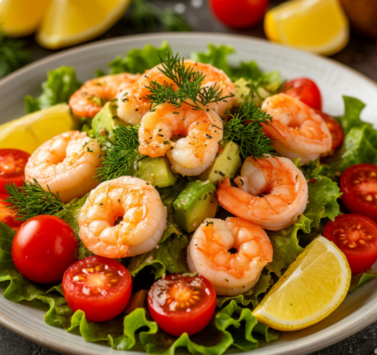 Приготовим сегодня легкий, освежающий и изысканный салат с креветками, авокадо и черри, идеально подходящий для летнего ужина! Начнем с подготовки ингредиентов. 100 г салатных креветок (можно использовать отварные или обжаренные) размораживаем. Спелый авокадо (1 шт) разрезаем пополам, удаляем косточку, очищаем от кожуры и нарезаем кубиками. 10 помидоров черри разрезаем пополам или на четвертинки. 0,5 пучка листьев салата тщательно промываем, обсушиваем и крупно рвем руками. 2 веточки укропа мелко шинкуем. 1 зубчик чеснока измельчаем. В миске соединяем креветки, авокадо, помидоры черри и листья салата. Для приготовления заправки в небольшой емкости смешиваем 2 ст.л. оливкового масла, 1 ч.л. лимонного сока, измельченный чеснок, укроп, черный молотый перец и соль по вкусу. Тщательно взбиваем заправку вилкой. Поливаем салат приготовленной заправкой и аккуратно перемешиваем, чтобы все ингредиенты равномерно покрылись соусом. Выкладываем салат на тарелку и сразу же подаем. Салат с креветками