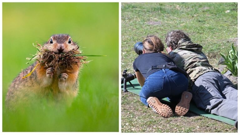 В “Брянском лесу” сфотографировали обустраивающего домашний быт суслика