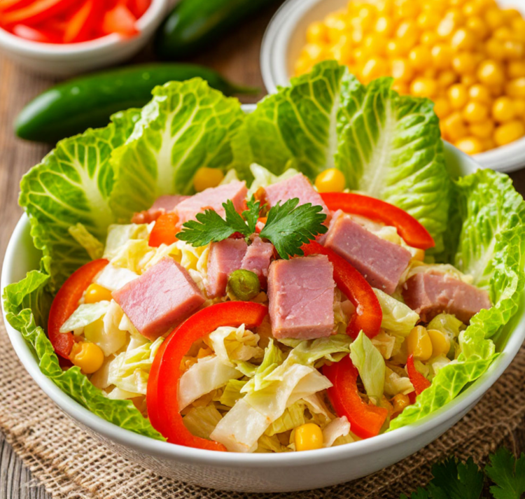 Сегодня приготовим быстрый, легкий и вкусный салат с пекинской капустой и ветчиной, идеальный для повседневного стола! Берем 1 вилок пекинской капусты, тщательно промываем и мелко шинкуем. 150 г ветчины нарезаем соломкой или кубиками. 1 болгарский перец (можно использовать красный или желтый для яркости) очищаем от семян и нарезаем соломкой. 1 свежий огурец нарезаем соломкой или полукружиями. В большой миске соединяем нарезанную пекинскую капусту, ветчину, болгарский перец и огурец. Добавляем 200 г консервированной кукурузы, предварительно слив жидкость. Солим и перчим по вкусу. Заправляем салат 2 ст.л. майонеза. Аккуратно перемешиваем все ингредиенты, чтобы майонез равномерно распределился по салату. Салат готов к подаче! Его можно подавать сразу же после приготовления или охладить в холодильнике в течение 30 минут. Салат с пекинской капустой и ветчиной получается очень сочным, хрустящим и аппетитным!