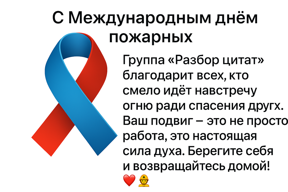 4 мая весь мир чествует тех, кто без страха входит в огонь ради спасения других. Что значит красно-синяя лента? Почему этот день — больше, чем просто дата в календаре? Узнайте в нашем материале — о мужестве, долге и настоящей силе духа. 👨🚒❤️🔥 Международный день пожарных, отмечаемый ежегодно 4 мая, является днём памяти и признательности пожарным по всему миру. Он был учреждён в 1999 году после трагической гибели пяти австралийских пожарных при тушении лесного пожара в Линтоне, штат Виктория .(Wikipedia) Праздник был предложен австралийским пожарным Джей Джей Эдмондсоном (JJ Edmondson) 4 января 1999 года после гибели пяти его коллег в декабре 1998 года . Дата 4 мая была выбрана в честь дня памяти святого Флориана, покровителя пожарных, который был первым известным командиром пожарной бригады в Римской империи .(Wikipedia, International Firefighters Day - 4th May) Символом Международного дня пожарных является красно-синяя лента: Эта лента также признана международным символом экстрен