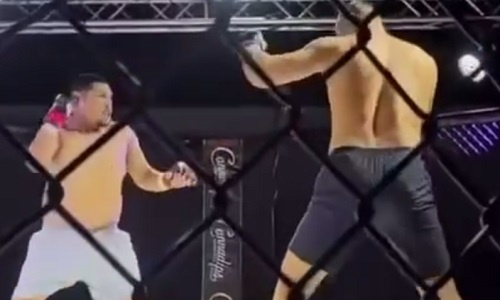 Нокаутом закончился дебютный бой чемпиона по борьбе из Кыргызстана в ММА. Видео