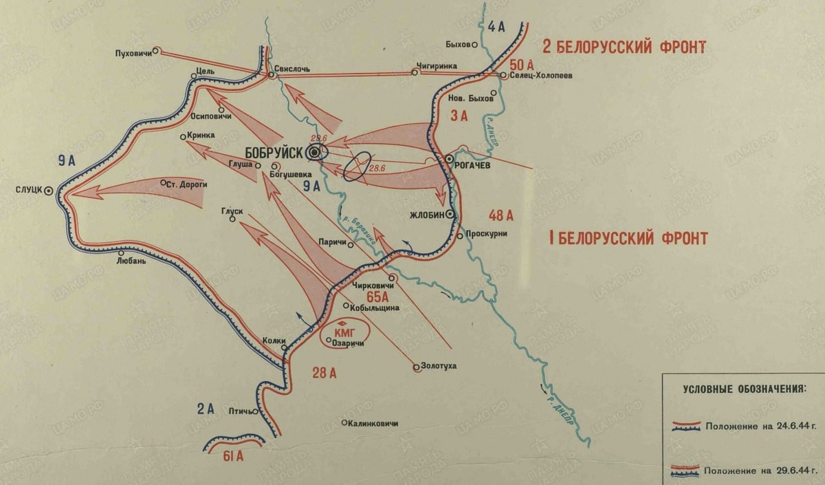 29 июня последние части немецкой 9-й армии, попавшие в Бобруйский котел, капитулировали, а остальные разрозненными группами уходили лесами и болотами на запад. Интересно, что из журналов боевых действий советских подразделений не вполне ясно, какая именно дивизия первая ворвалась в город и когда он был полностью освобожден. Так, в журнале боевых действий 105-го стрелкового корпуса (65-я армия) указано: «Войска 105 СК в составе 354 Калинковической стрелковой дивизии, 356-й Калинковической стрелковой дивизии и 115-й ОСБр в результате двухдневных боев к 10.00 29.6.44 полностью овладели г. Бобруйск». А вот в описании действий частей 137-й стрелковой дивизии говорится, что именно она овладела Бобруйском, причем не в 10 часов утра, а только к 14.00. Не секрет, что советские военачальники нередко соперничали между собой, стремясь получить славу освободителя того или иного крупного города. Видимо, и в данном случае имело место некое соревнование между командующим 65-й армией генерал-лейтенантом Павлом Батовым и командующим 48-й армией генерал-лейтенантом Прокофием Романенко. Оба заявили, что именно их подопечные освободили Бобруйск. Так или иначе сразу 20 подразделений, включая все упомянутые дивизии, по итогам операции получили почетное звание «Бобруйских».