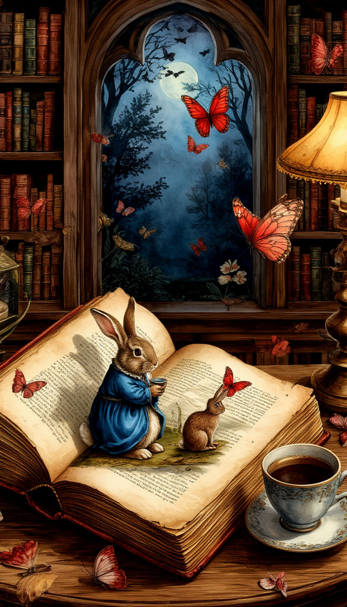 Когда я впервые переступила порог нашей библиотеки, сердце моё сразу замерло от восторга. Это было не просто место, заставленное книжными полками, нет. Здесь было что-то большее, что-то живое и трепетное, словно дыхание старых историй. Библиотека укутывала меня, словно тёплый бабушкин плед, пахла кофе и пылью, чернилами и тем особым волшебством, которое таится в старых книгах и забытых письмах. Я сразу поняла — здесь я дома. Уже в первые дни работы я услышала от детей загадочную историю. Они шептались, прикрывая ладошками рты и широко распахивая глаза: — «Ты видел? Вчера заяц был в синем костюмчике, а сегодня — в красном!» Взрослые только улыбались, покачивая головами, но я не могла не задуматься — а вдруг правда? Ведь так хочется верить в чудо, даже если тебе давно уже не восемь лет. — «Слушай, а ты слышала про эту загадочную книгу с меняющимися картинками?» — спросил однажды Алексей, мой коллега-практикант, всегда немного рассеянный, но страстно влюблённый в книги. Мы сидели в читаль
