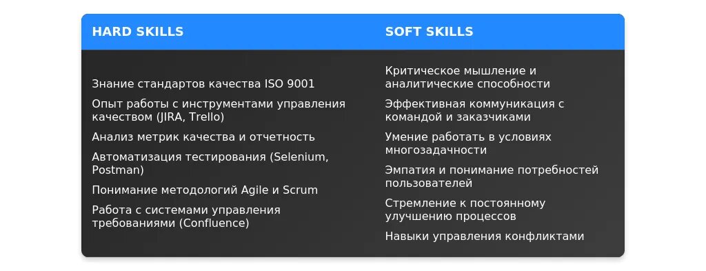 После адаптации: "Знание ISO 9001, опыт проведения внутренних аудитов, разработка регламентов качества."