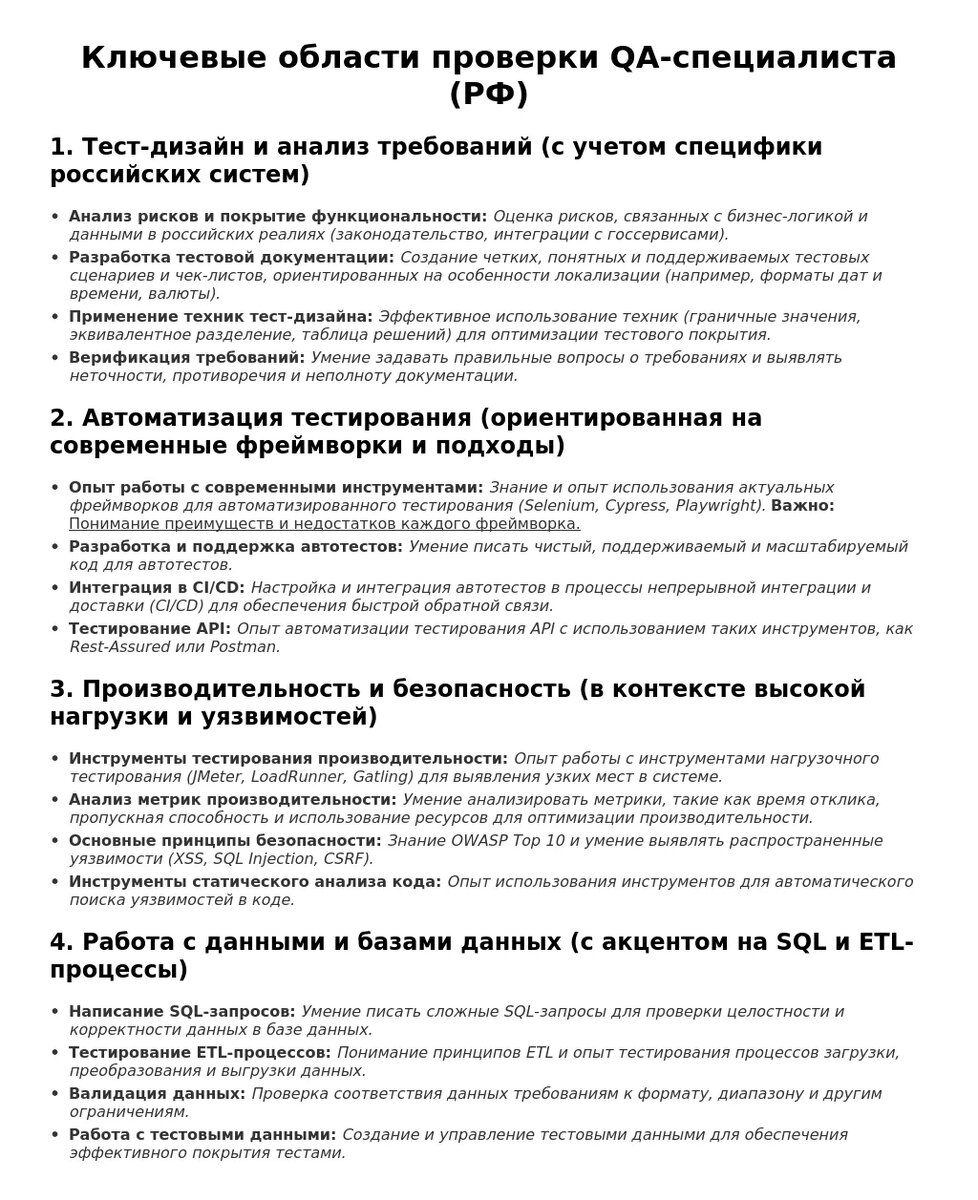 Работодатели сосредотачиваются на нескольких ключевых областях при оценке кандидатов на позицию QA-специалиста:
