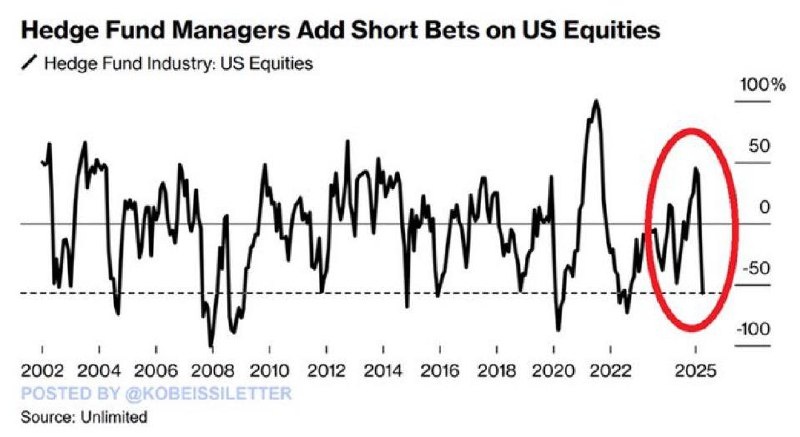 Фонды снова в шортах. Что они видят — и что мы можем из этого вынести? Показатель коротких позиций хедж-фондов по американским акциям — на максимуме с 2022 года. А если смотреть исторически — такие всплески бывали всего несколько раз: — перед кризисом 2008 — в ковиде — и перед медвежкой 2022 Сейчас снова сигнал. Unlimited отслеживает позиции 3000 хедж-фондов в реальном времени. Это $5 трлн под управлением. И вот эти деньги делают ставку на падение. Особенно активно — против мелких и средних компаний. Вдобавок, фонды смещают акцент: — уменьшают вес США — наращивают длинные позиции в Европе и Японии Что это значит? Фонды — это не толпа. Они не бегают за новостями. Они смотрят в отчёты, маржинальность, ставки, денежные потоки. И делают ставку, что рынок США перекуплен. Особенно тот, что за пределами магических «семи» гигантов. К чему всё идёт? Есть шанс, что рынок перегрелся. Может быть коррекция — и крупная. А может быть — это просто перегиб и будет short squeeze. Вопрос к вам Сч