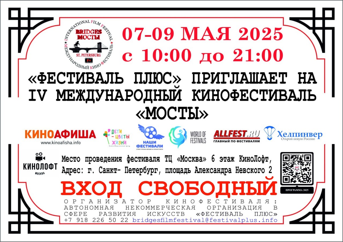 🎥 7–9 мая 2025 года в Санкт-Петербурге пройдёт IV ежегодный международный кинофестиваль «МОСТЫ», организатором которого выступает