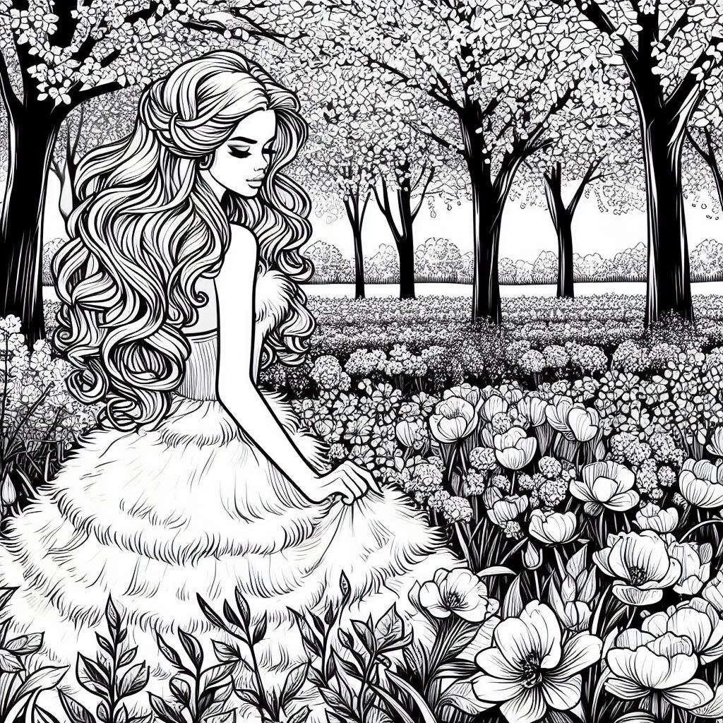 Бесплатная раскраска-антистресс "Девушка в саду" (5 рисунков)